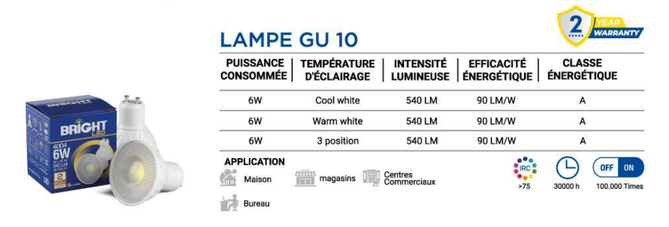 La lampe GU10 est un type d’ampoule couramment utilisé pour l’éclairage domestique et commercial.